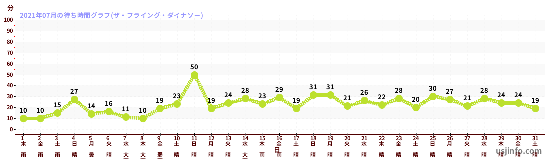 • ザ・フライング・ダイナソー$B$N(B2021年07月01日のの一日平均待ち時間