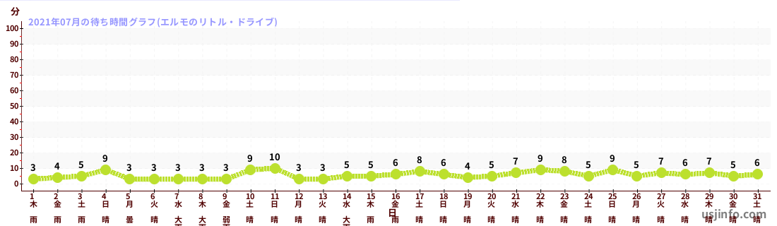 • エルモのリトル・ドライブ$B$N(B2021年07月01日のの一日平均待ち時間
