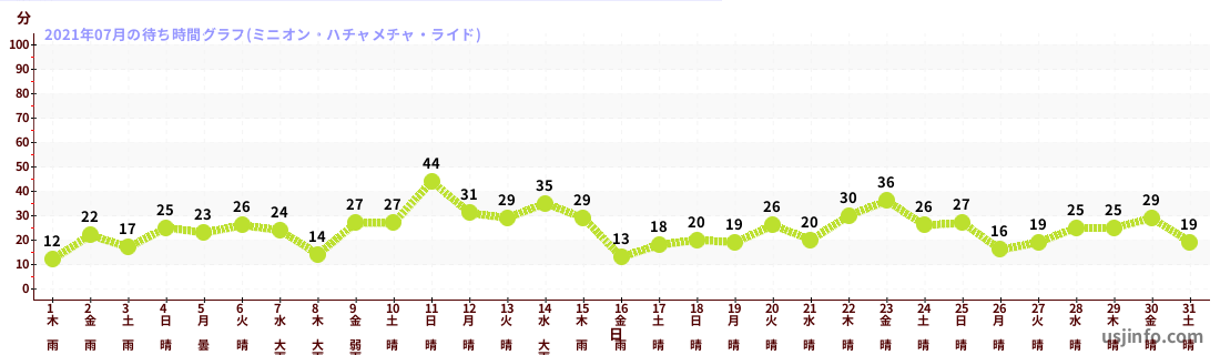 • ミニオン・ハチャメチャ・ライド$B$N(B2021年07月01日のの一日平均待ち時間