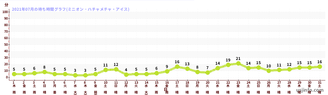 • ミニオン・ハチャメチャ・アイス$B$N(B2021年07月01日のの一日平均待ち時間