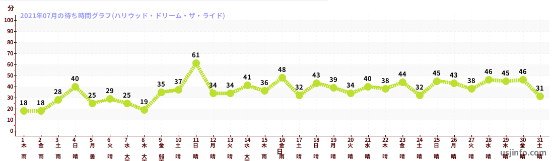 • ハリウッド・ドリーム・ザ・ライド$B$N(B2021年07月01日のの一日平均待ち時間