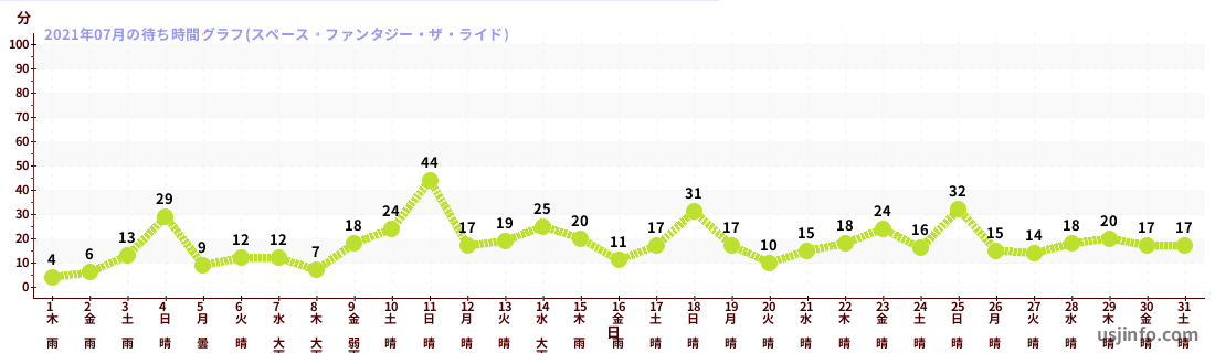 • スペース・ファンタジー・ザ・ライド$B$N(B2021年07月01日のの一日平均待ち時間