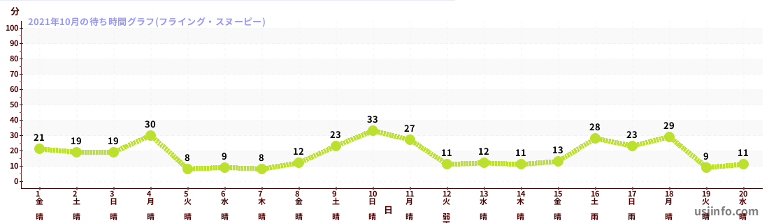 • フライング・スヌーピー$B$N(B2021年10月01日のの一日平均待ち時間