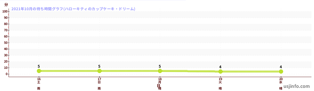 • ハローキティのカップケーキ・ドリーム$B$N(B2021年10月01日のの一日平均待ち時間