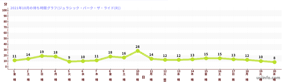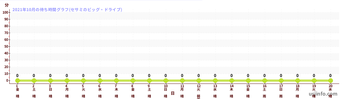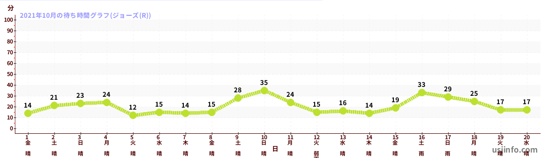 • ジョーズ(R)$B$N(B2021年10月01日のの一日平均待ち時間