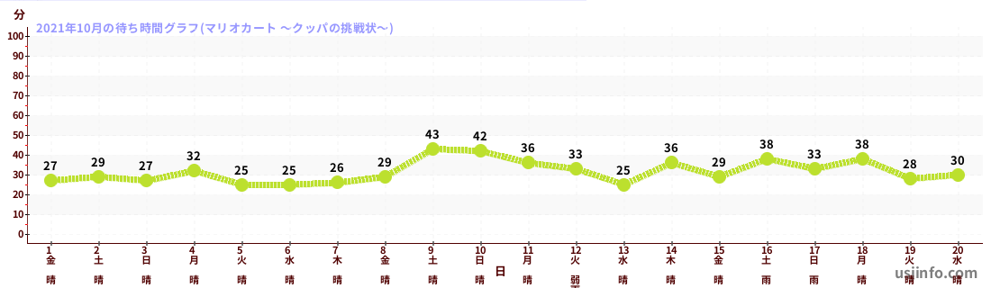 • マリオカート ~クッパの挑戦状~$B$N(B2021年10月01日のの一日平均待ち時間