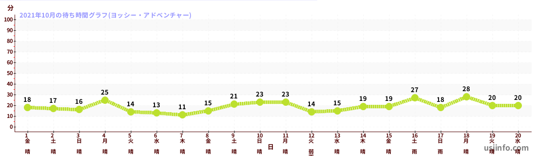 • ヨッシー・アドベンチャー$B$N(B2021年10月01日のの一日平均待ち時間