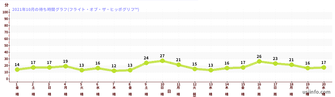 • フライト・オブ・ザ・ヒッポグリフ™$B$N(B2021年10月01日のの一日平均待ち時間