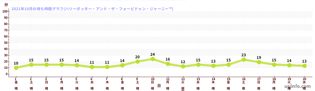 • ハリーポッター・アンド・ザ・フォービドゥン・ジャーニー™$B$N(B2021年10月01日のの一日平均待ち時間