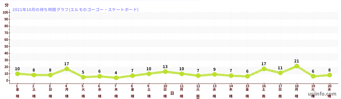 • エルモのゴーゴー・スケートボード$B$N(B2021年10月01日のの一日平均待ち時間