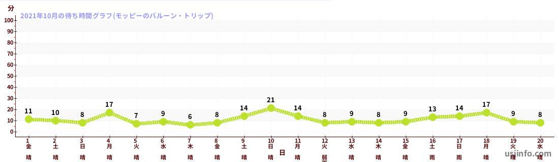 • モッピーのバルーン・トリップ$B$N(B2021年10月01日のの一日平均待ち時間