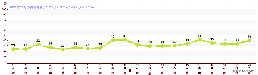 • ザ・フライング・ダイナソー$B$N(B2021年10月01日のの一日平均待ち時間