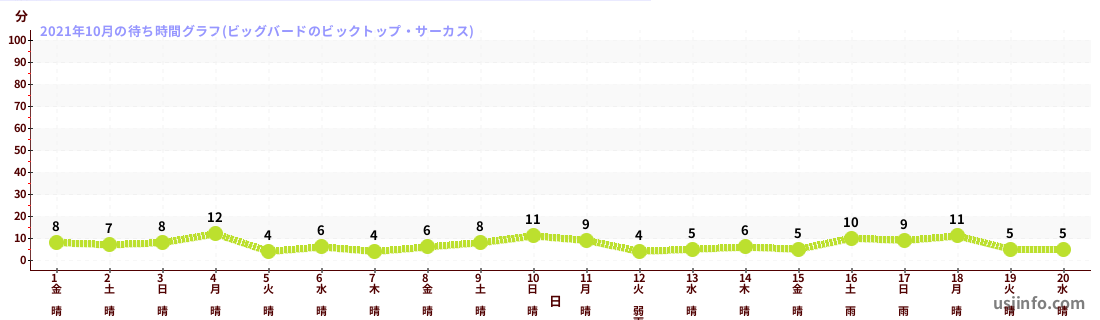 • ビッグバードのビックトップ・サーカス$B$N(B2021年10月01日のの一日平均待ち時間