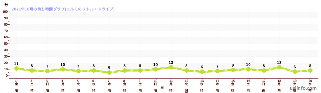 • エルモのリトル・ドライブ$B$N(B2021年10月01日のの一日平均待ち時間