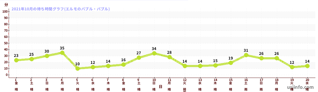 • エルモのバブル・バブル$B$N(B2021年10月01日のの一日平均待ち時間