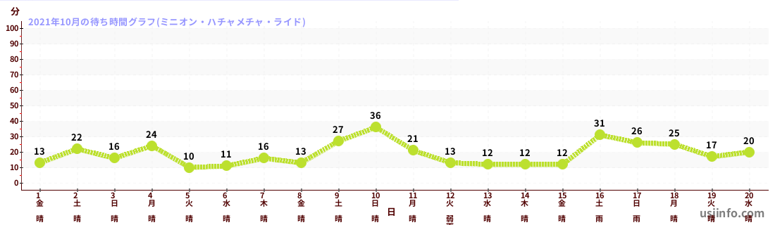 • ミニオン・ハチャメチャ・ライド$B$N(B2021年10月01日のの一日平均待ち時間