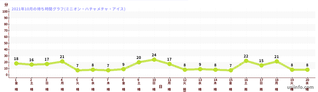 • ミニオン・ハチャメチャ・アイス$B$N(B2021年10月01日のの一日平均待ち時間