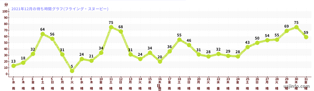 • フライング・スヌーピー$B$N(B2021年12月01日のの一日平均待ち時間