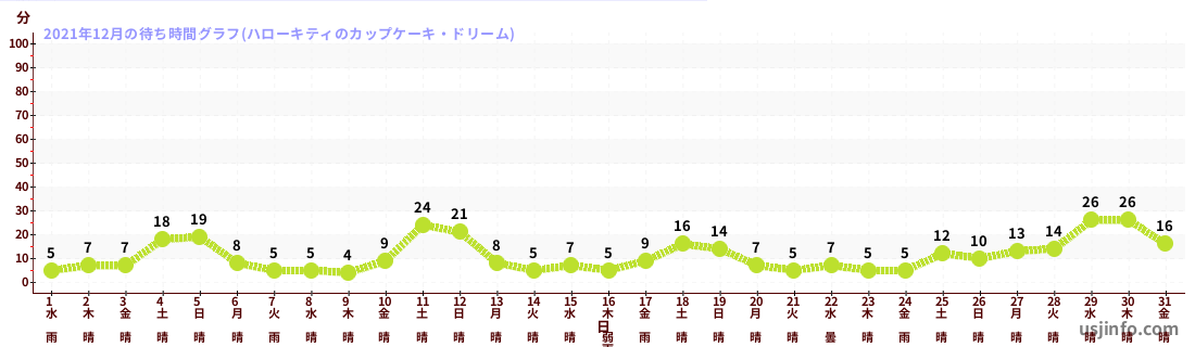 • ハローキティのカップケーキ・ドリーム$B$N(B2021年12月01日のの一日平均待ち時間