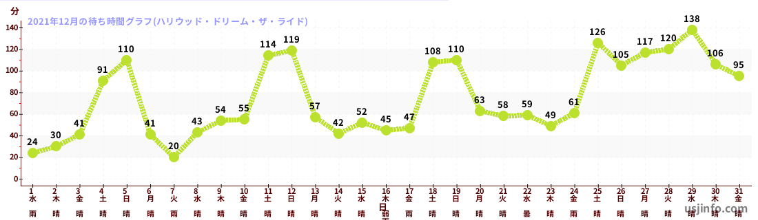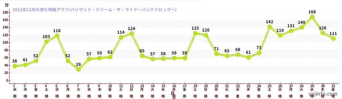 • ハリウッド・ドリーム・ザ・ライド$B$N(B2021年12月01日のの一日平均待ち時間