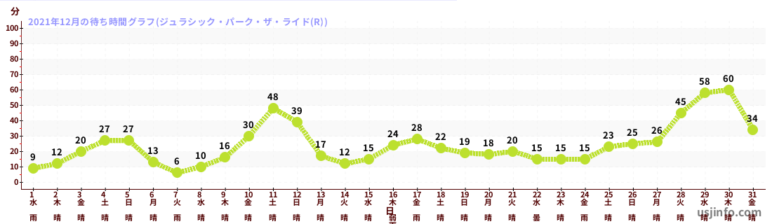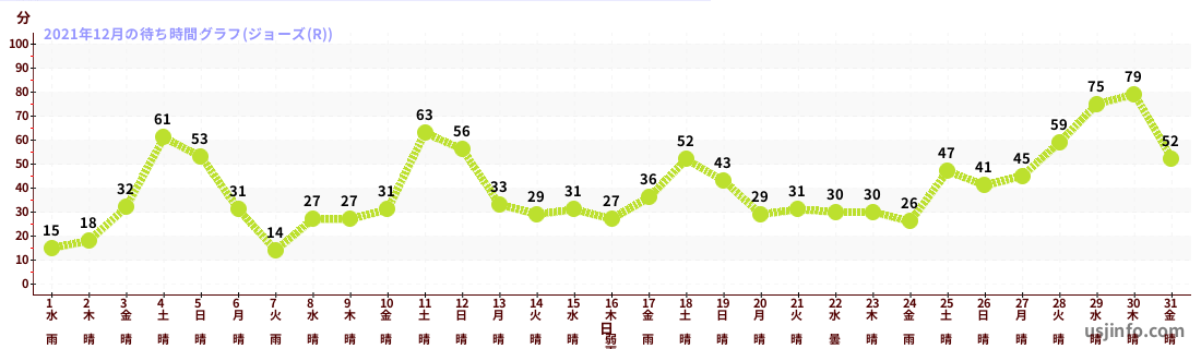 • ジョーズ(R)$B$N(B2021年12月01日のの一日平均待ち時間