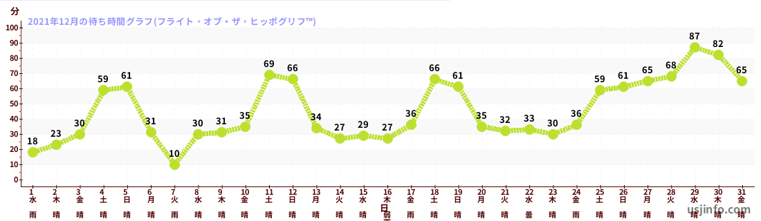 • フライト・オブ・ザ・ヒッポグリフ™$B$N(B2021年12月01日のの一日平均待ち時間