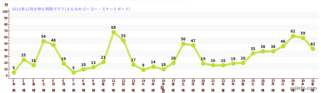 • エルモのゴーゴー・スケートボード$B$N(B2021年12月01日のの一日平均待ち時間