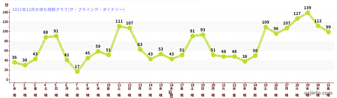 • ザ・フライング・ダイナソー$B$N(B2021年12月01日のの一日平均待ち時間