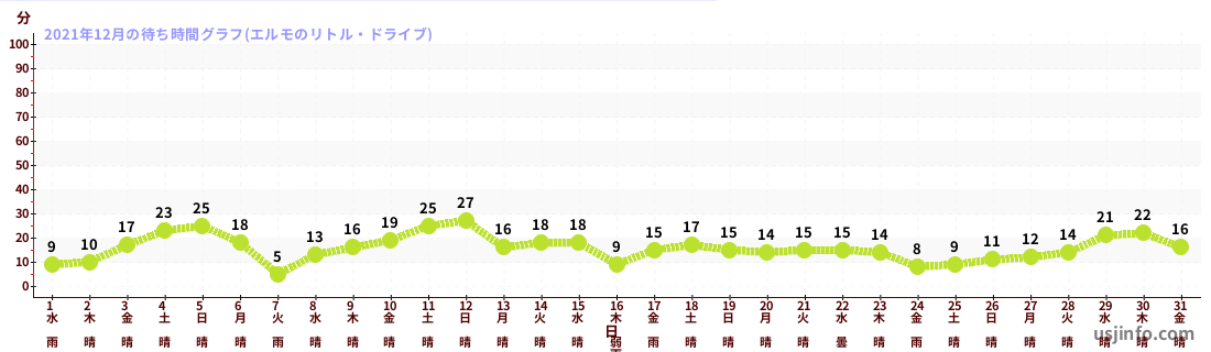 • エルモのリトル・ドライブ$B$N(B2021年12月01日のの一日平均待ち時間
