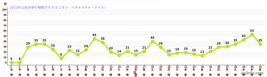 • ミニオン・ハチャメチャ・アイス$B$N(B2021年12月01日のの一日平均待ち時間