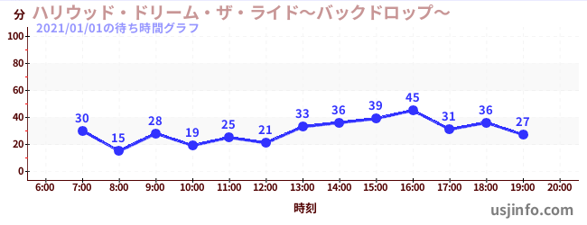 • ハリウッド・ドリーム・ザ・ライド〜バックドロップ〜$B$N(B2021年01月01日の待ち時間
