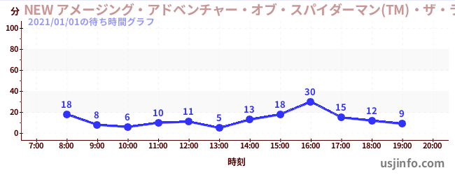 • NEW アメージング・アドベンチャー・オブ・スパイダーマン(TM)・ザ・ライド 4K3D$B$N(B2021年01月01日の待ち時間