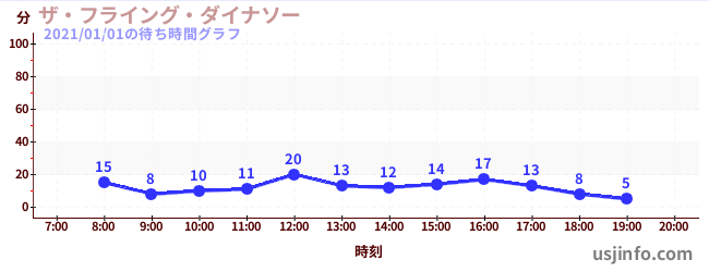 • ザ・フライング・ダイナソー$B$N(B2021年01月01日の待ち時間