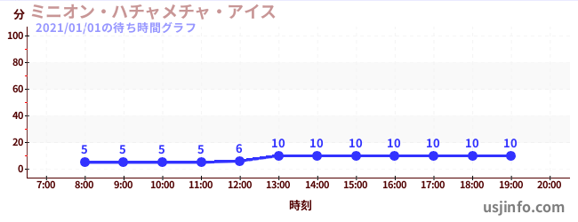 • ミニオン・ハチャメチャ・アイス$B$N(B2021年01月01日の待ち時間