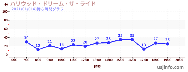 • ハリウッド・ドリーム・ザ・ライド$B$N(B2021年01月01日の待ち時間