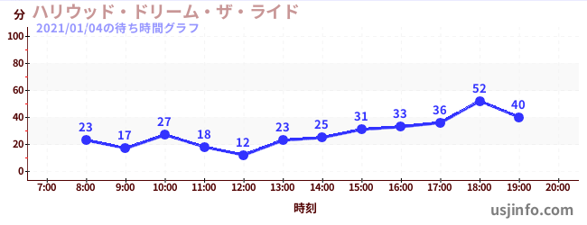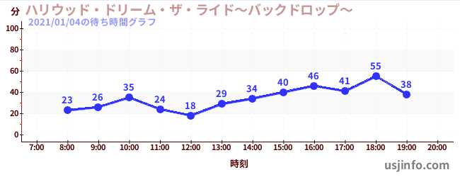 • ハリウッド・ドリーム・ザ・ライド〜バックドロップ〜$B$N(B2021年01月04日の待ち時間