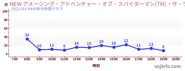 • NEW アメージング・アドベンチャー・オブ・スパイダーマン(TM)・ザ・ライド 4K3D$B$N(B2021年01月04日の待ち時間