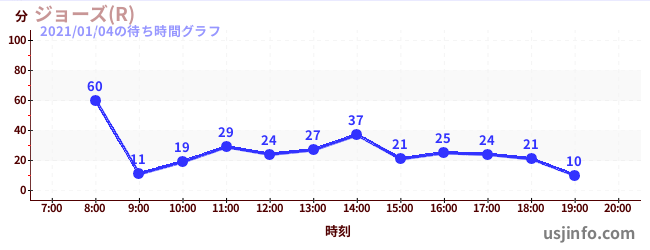 • ジョーズ(R)$B$N(B2021年01月04日の待ち時間