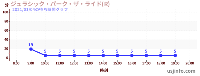 • ジュラシック・パーク・ザ・ライド(R)$B$N(B2021年01月04日の待ち時間