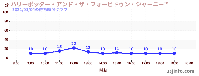 • ハリーポッター・アンド・ザ・フォービドゥン・ジャーニー™$B$N(B2021年01月04日の待ち時間