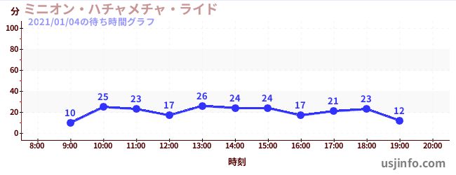 • ミニオン・ハチャメチャ・ライド$B$N(B2021年01月04日の待ち時間