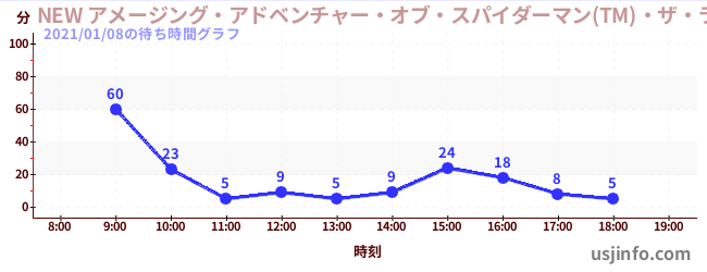 • NEW アメージング・アドベンチャー・オブ・スパイダーマン(TM)・ザ・ライド 4K3D$B$N(B2021年01月08日の待ち時間