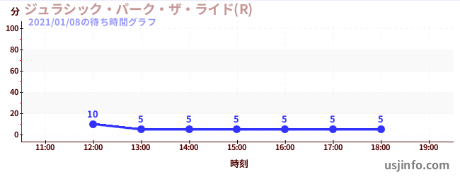 • ジュラシック・パーク・ザ・ライド(R)$B$N(B2021年01月08日の待ち時間