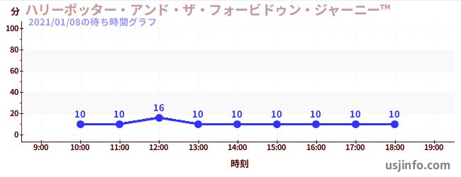 • ハリーポッター・アンド・ザ・フォービドゥン・ジャーニー™$B$N(B2021年01月08日の待ち時間