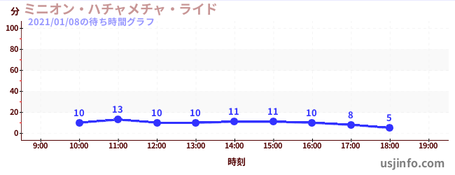 • ミニオン・ハチャメチャ・ライド$B$N(B2021年01月08日の待ち時間