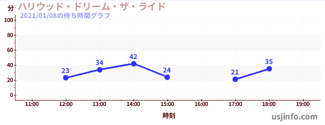 • ハリウッド・ドリーム・ザ・ライド$B$N(B2021年01月08日の待ち時間