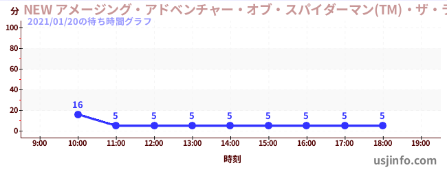 • NEW アメージング・アドベンチャー・オブ・スパイダーマン(TM)・ザ・ライド 4K3D$B$N(B2021年01月20日の待ち時間