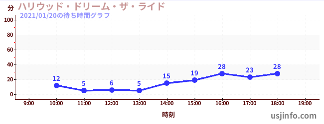• ハリウッド・ドリーム・ザ・ライド$B$N(B2021年01月20日の待ち時間