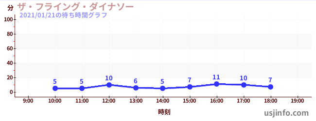 • ザ・フライング・ダイナソー$B$N(B2021年01月21日の待ち時間