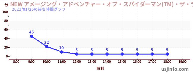 • NEW アメージング・アドベンチャー・オブ・スパイダーマン(TM)・ザ・ライド 4K3D$B$N(B2021年01月25日の待ち時間